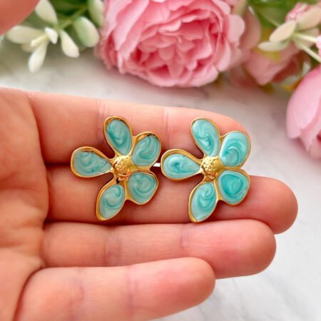 Aros Flor Turquesa – Enchape Oro