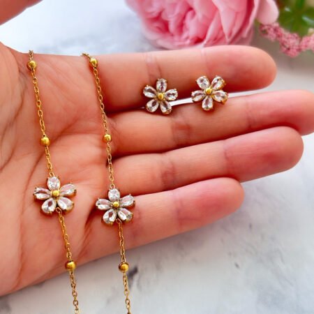 Conjunto Flor Radiante – Acero Inoxidable Enchape de oro 18K