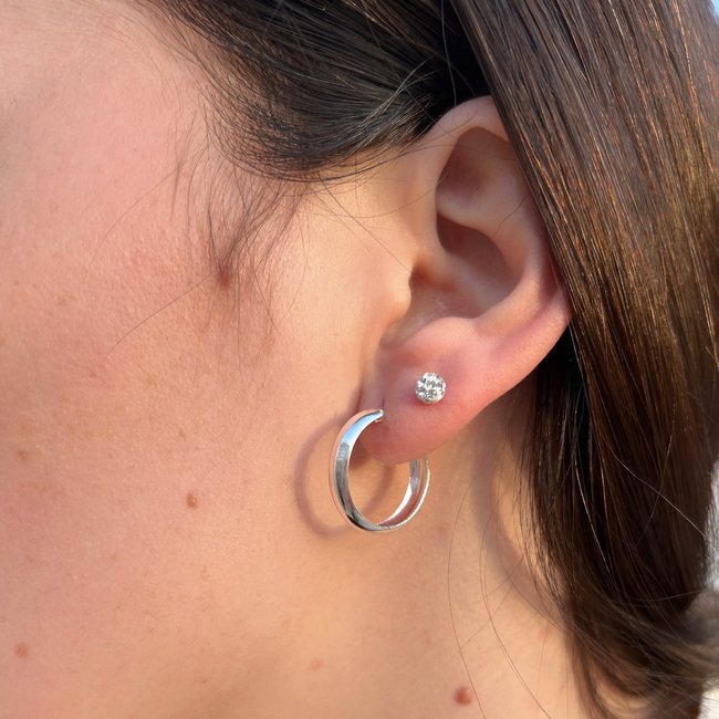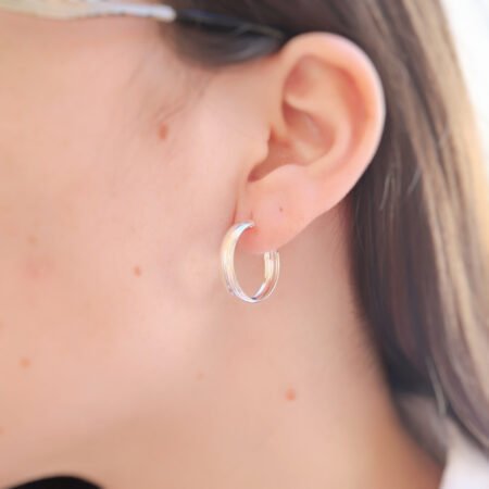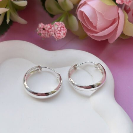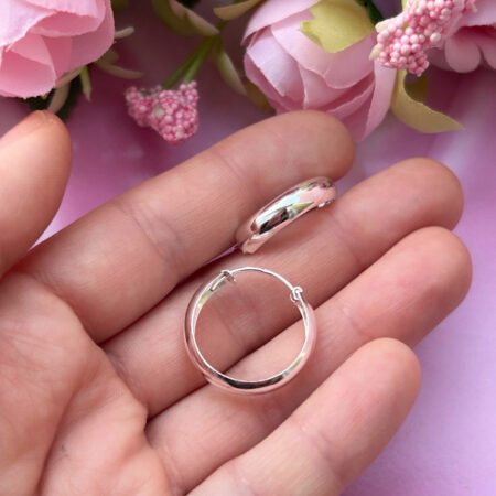 Estos aros tipo argolla de 20 mm destacan por su diseño estilo bote, con un sutil volumen que aporta presencia sin perder la elegancia. Su forma curva y pulida los convierte en un básico atemporal, ideal para complementar desde looks casuales hasta outfits más sofisticados.