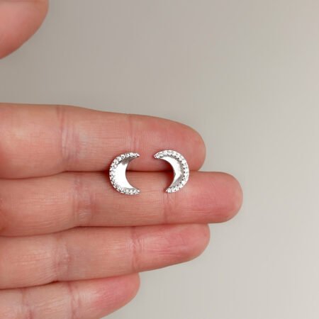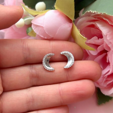 – Aros apegados con diseño de luna con circones.