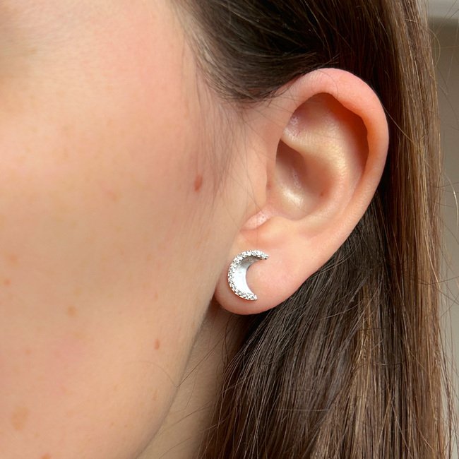 Una media luna que ilumina tu estilo con suavidad y misterio.