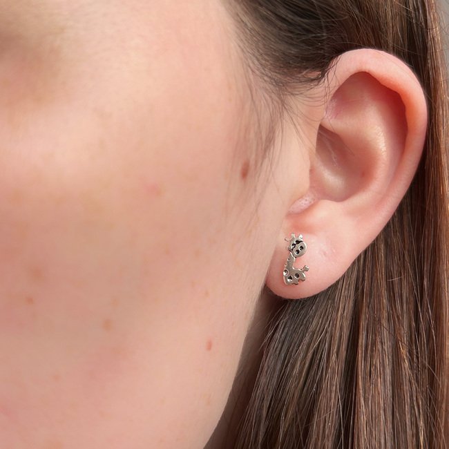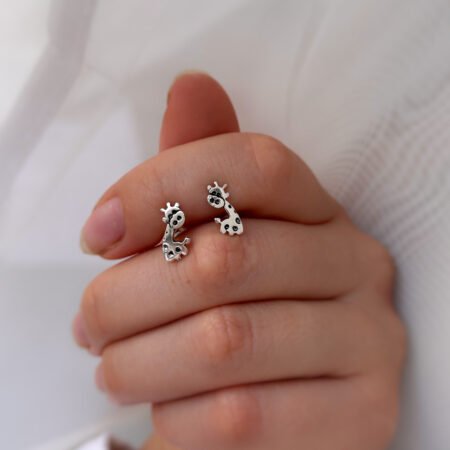 Estos adorables aros apegados al lóbulo presentan un delicado diseño de jirafa, perfectos para quienes aman los detalles con personalidad. Simbolizan la elegancia, la visión amplia y la conexión con la naturaleza, todo en una joya pequeña, cómoda y con un toque lúdico.