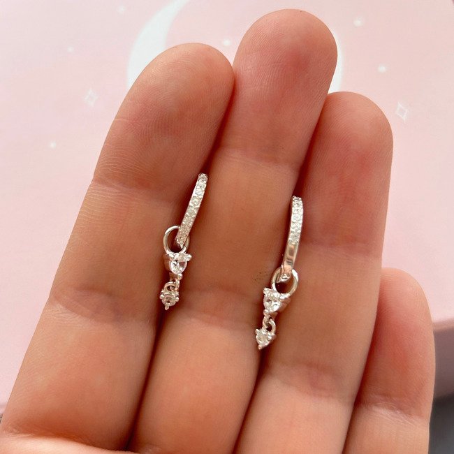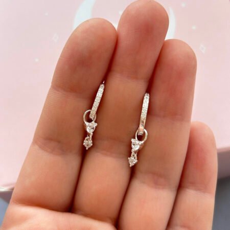Un diseño versátil que se adapta a tu estilo y a cada momento del día. Estas argollas brillan delicadamente gracias a sus circones incorporados, mientras que dos circones colgantes aportan movimiento y un toque de luz extra.