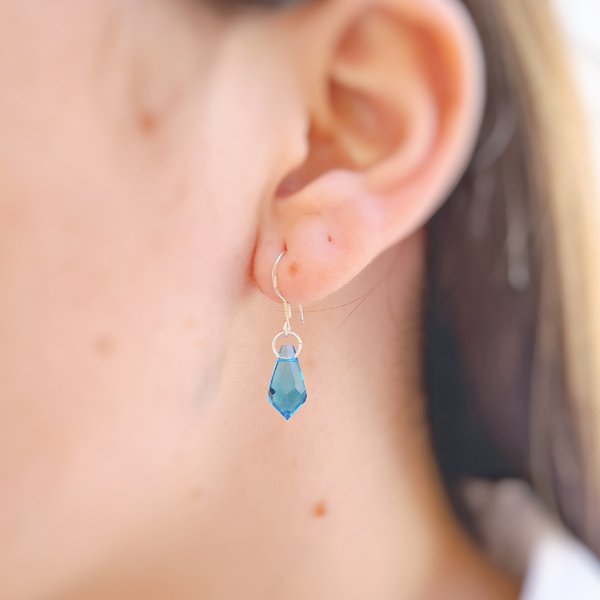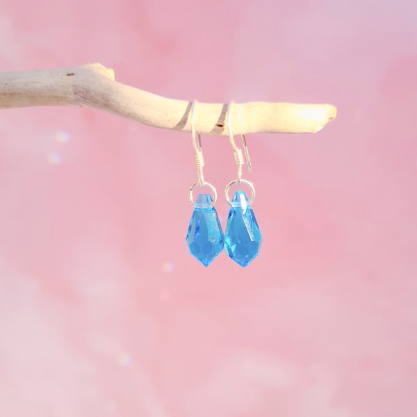 Estos aros colgantes destacan por su hermosa forma de cristal en tono turquesa, una piedra que evoca calma, protección y conexión con la naturaleza. Su diseño facetado capta la luz con elegancia, aportando un brillo sutil que realza cualquier look.