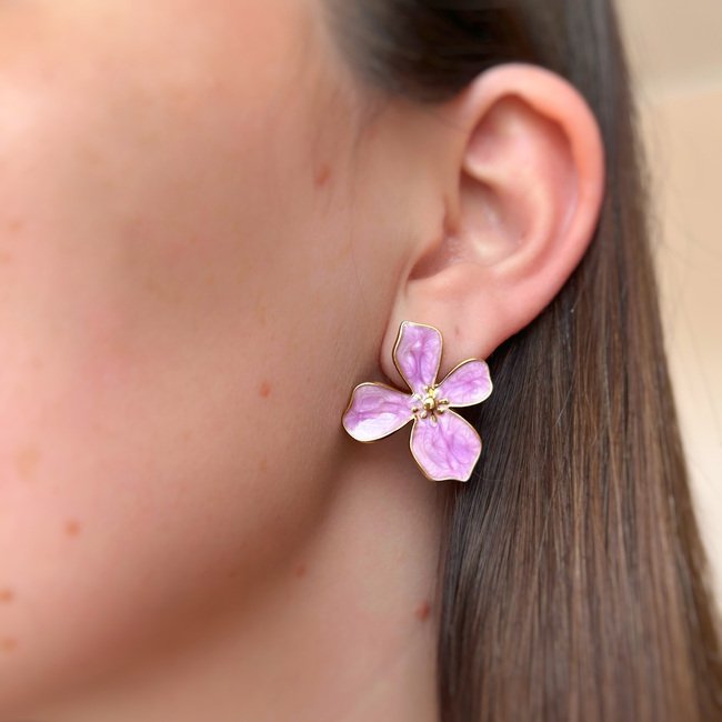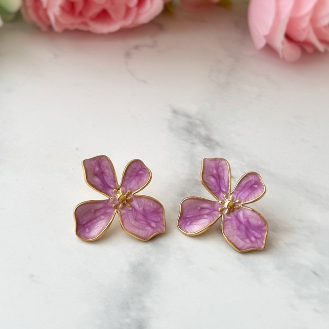 Aros flor acero inoxidable – Enchape oro 18 K