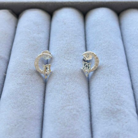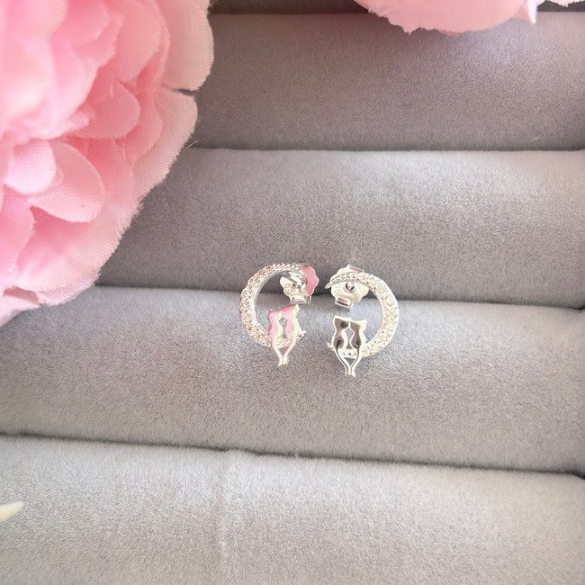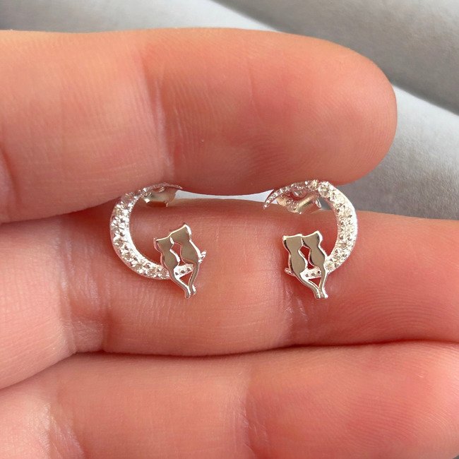 – Aros apegados con diseño de gatitos sentados en la luna. Luna contiene circones brillantes