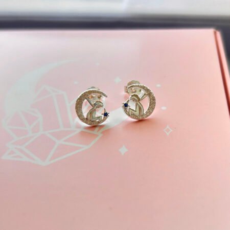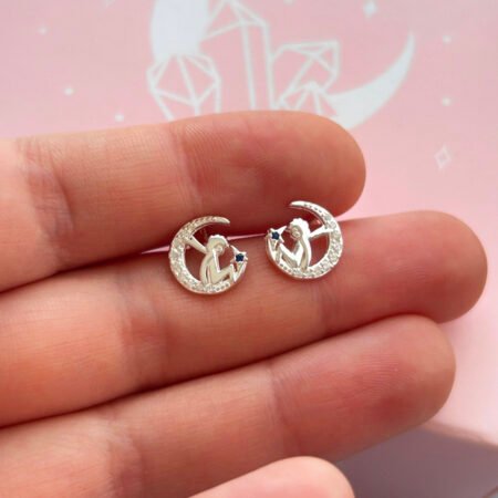 Un par de aros inspirados en la magia y sensibilidad de El Principito, que nos recuerdan que lo esencial se siente con el corazón. El diseño muestra al Principito sentado sobre la luna, la cual brilla suavemente gracias a sus circones, aportando luz y encanto a cada movimiento.