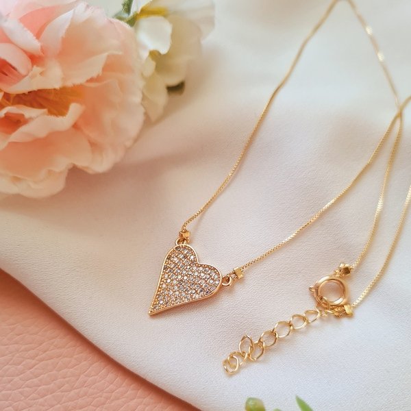 – Collar con colgante de corazón cubierto de microcircones blancos