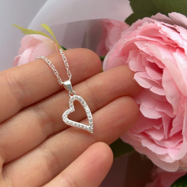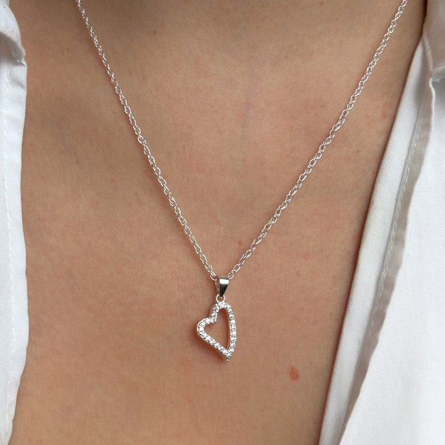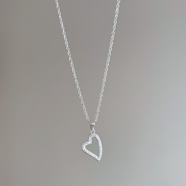Collar corazón irregular con circones – Plata 925
