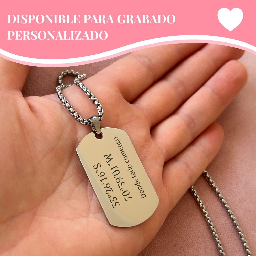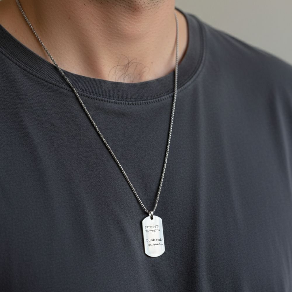 Este collar estilo militar une un diseño sobrio y resistente con un significado personal, transformándose en mucho más que un collar: en un recuerdo constante de lo que realmente importa.