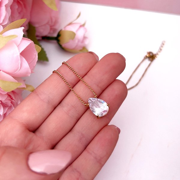 – Collar con colgante punto de luz con circón en forma de gota