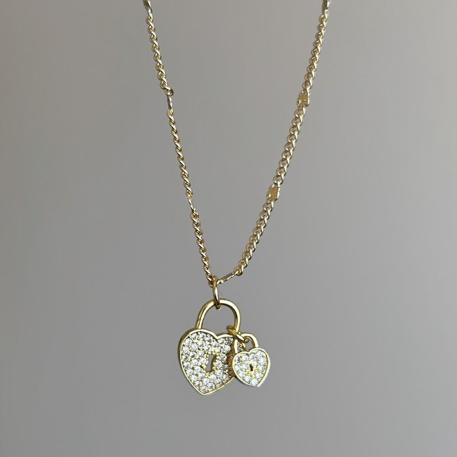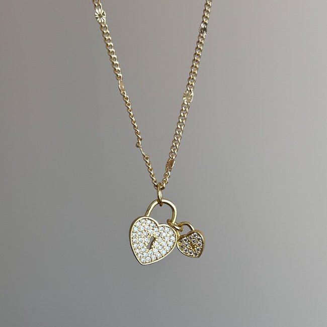 Madre hija? Hermanas unidas? Dale un significado especial a este collar con 2 corazones representado la unión con el candado, además es un collar delicado y femenino que le dará brillo a tu look ✨.