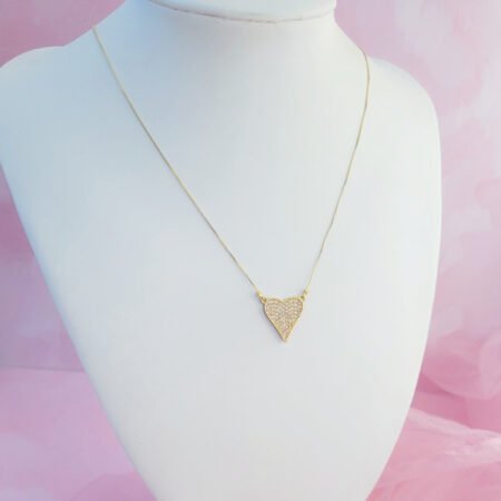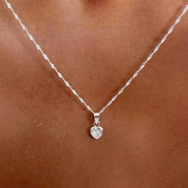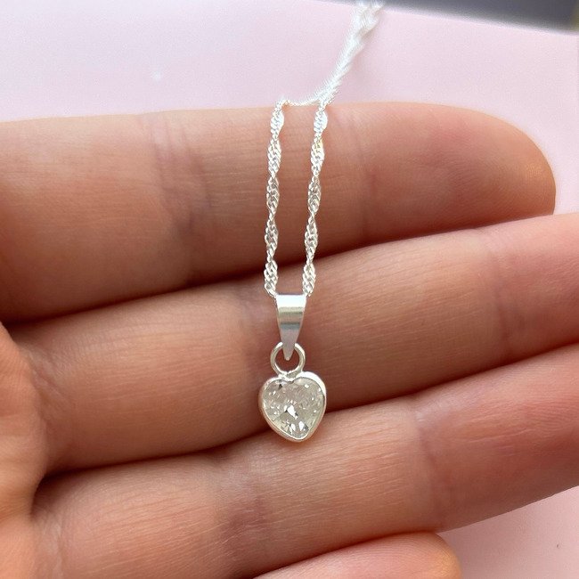 – Colgante de circón en forma de corazón + cadena de 45 o 50 cm + aros colgantes a juego