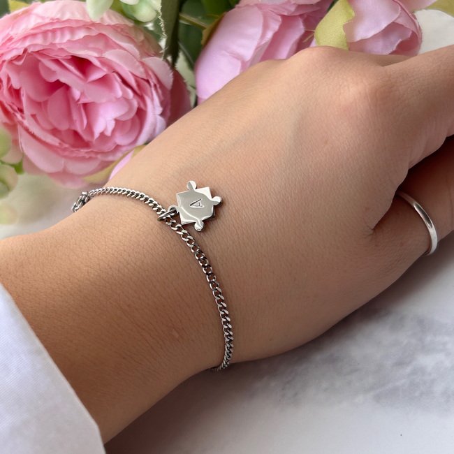 Personaliza cada pieza con sus iniciales y ajusta la pulsera para que quede cómoda en tu muñeca 🧩❤⁣