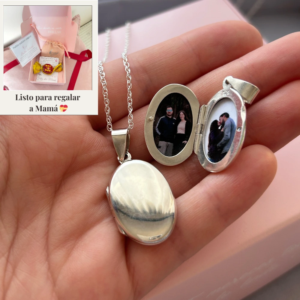 Este relicario de plata 925 personalizado con tus fotos, te permite guardar dos recuerdos especiales y lleva a tus seres amados siempre contigo y al ladito de tu corazón.