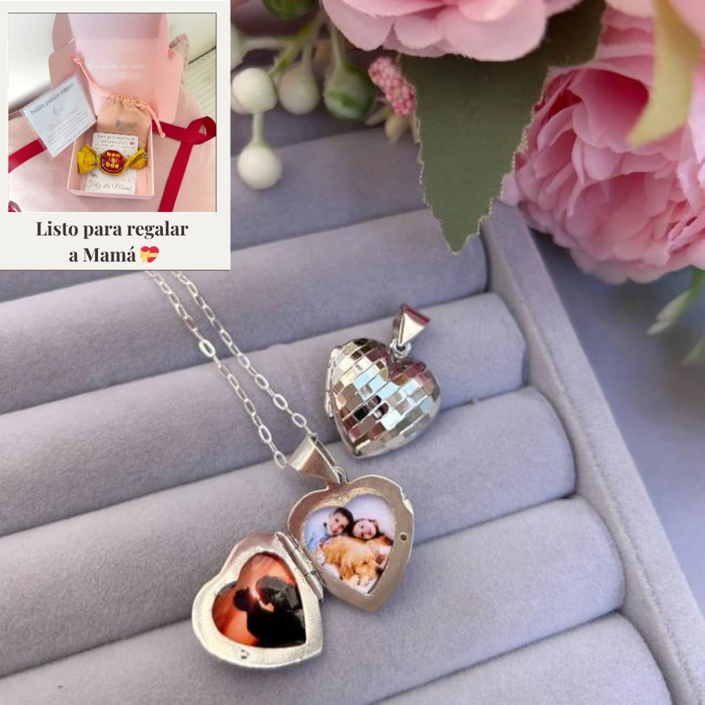 Set de relicario con fotos listo para regalar este Día de la Mamá 💝