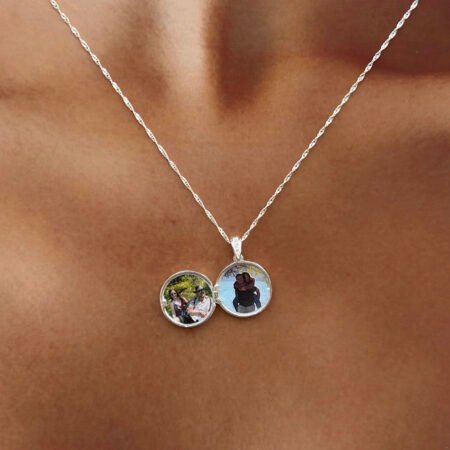 Este relicario de plata 925 personalizado con tus fotos, te permite guardar dos recuerdos especiales y lleva a tus seres amados siempre contigo y al ladito de tu corazón.