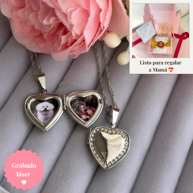 Set de relicario con fotos listo para regalar este Día de la Mamá 💝