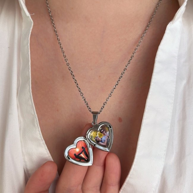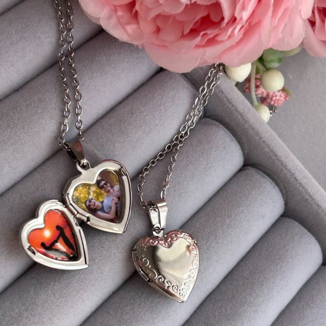 Relicario corazón, apto para colocar 2 fotografías – Acero inoxidable
