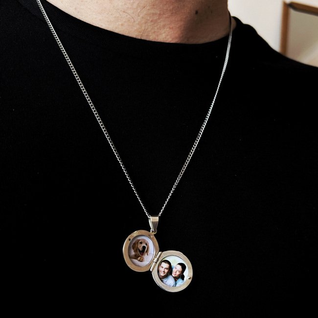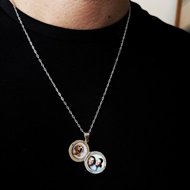 Relicario ideal para hombre, personalizado con 2 fotografías – Plata 925