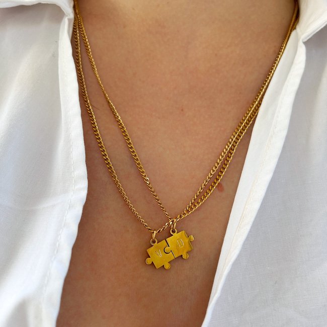 Este set de collares es un símbolo de conexión, amor y complicidad. Cada pieza de puzzle representa a una persona especial, y juntas forman un lazo único e inseparable.