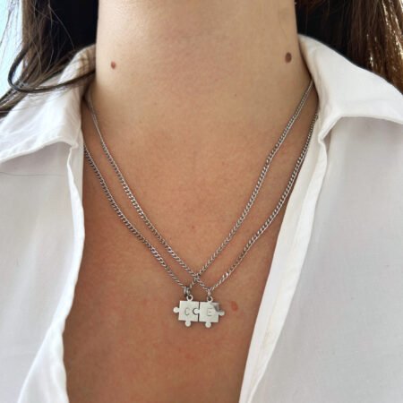 Este set de collares es un símbolo de conexión, amor y complicidad. Cada pieza de puzzle representa a una persona especial, y juntas forman un lazo único e inseparable.