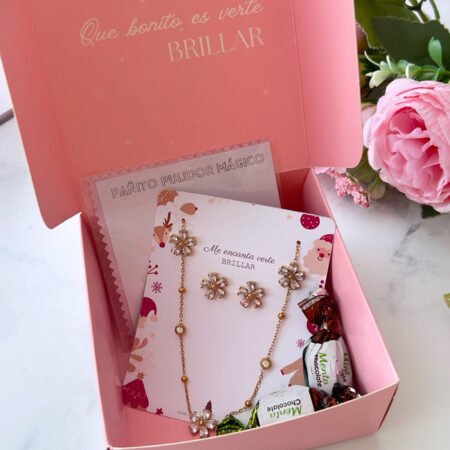 Fabricado en acero inoxidable enchapado en oro de 18K, este conjunto destaca por su durabilidad, resistencia al uso diario y su acabado luminoso. Ideal para elevar looks cotidianos o complementar tenidas más especiales con un toque femenino y sofisticado.